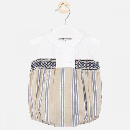 Babygrow bez rukávů pro novorozeného chlapce. Kulatý výstřih. Přichytávací knoflíky pro upevnění. Elastické manžety kolem spodní části nohavic pro lepší pohodlí při nošení. Vyrobeno ze 100% bavlněné tkaniny. Vzorovaný design.