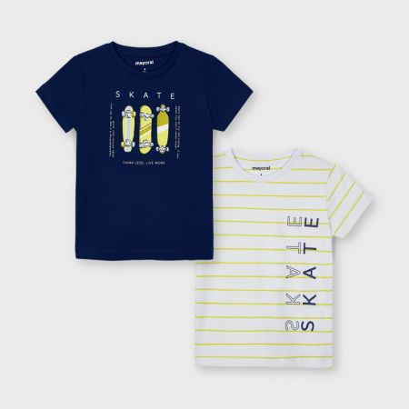 Mayoral chlapecké triko s krátkým rukávem - set dvou kusů. Klasický střih, vepředu zdobeno krásným obrázkem a pruhovaným vzorem. Vyrobeno z jemného, čistě bavlněného materiálu.