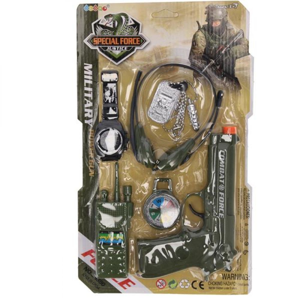 MEGA CREATIVE - Vojenská sadaVojenská sada Vojenské sada pro každého malého vojáka. Souprava obsahuje:pistoli, vysílačku, sluchátka, kompas, hodinky a odznak. Materiál: plast Vhodné pro děti od 3+