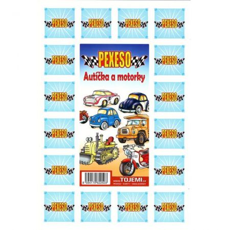 Pexeso s motivem autíček a motorek.\nProvedení: A4