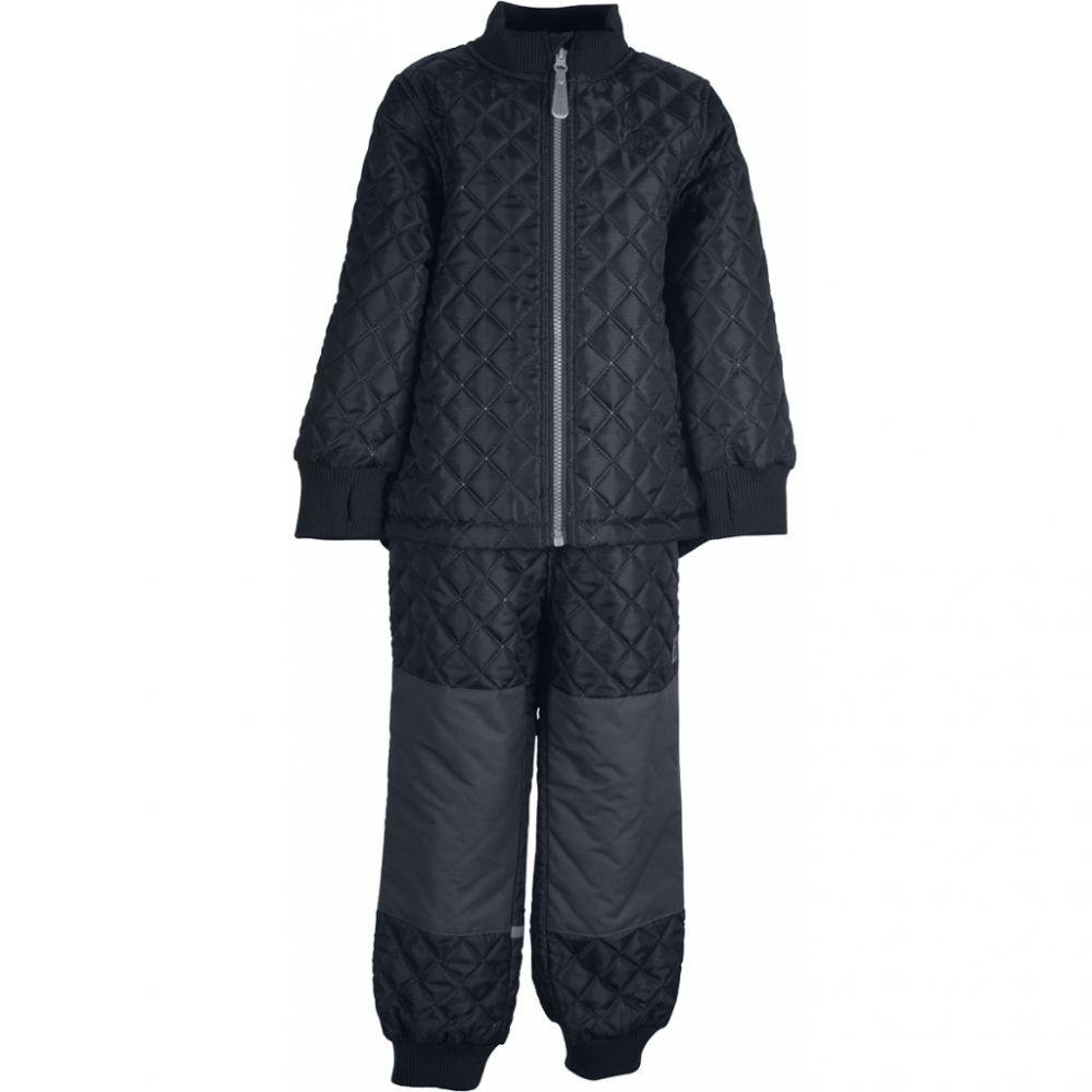 Mikk-Line - dětský termo oblek - set kalhot a bundy. Ideální volba do chladného počasí. Oblek je voděodolný, ošetřen vrstvou BIONIC FINISH ECO, má zesílený materiál v namáhaných částech - kolena a hýždě. Bunda je prošívaná, se zapínáním pomocí kvalitního zipu s ochranou brady proti poškrábání. Na konci rukávů a u krku jsou elastické žebrované manžety. Rukávy vybaveny otvorem pro palec. Kalhoty jsou v pase elastické, jsou prošívané, u kotníků jsou elastické žebrované manžety. Oblek vybaven reflexními prvky a praktickou jmenovkou uvnitř bundy.