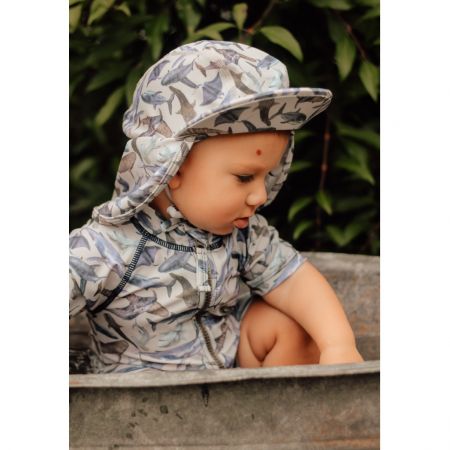 Dětská letní čepice s kšiltem a dlouhým zadním dílem, který chrání pokožku před sluníčkem.