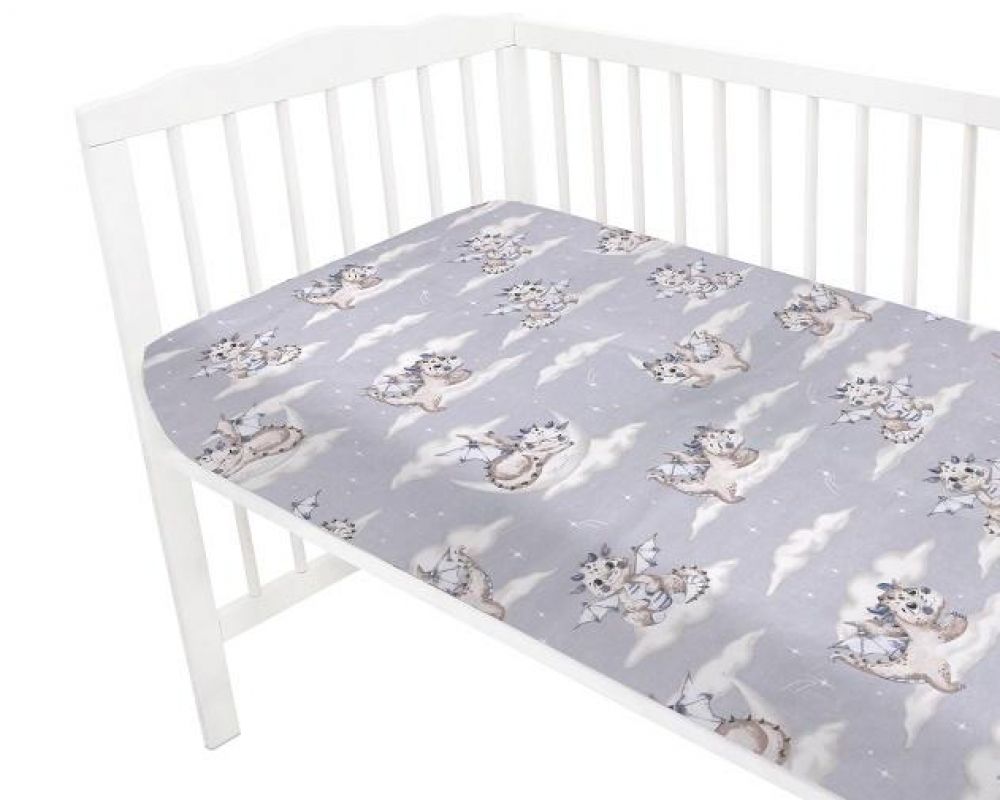 Miminu Dětské bavlněné prostěradlo do postýlky, Dráček Mráček - modrá/šedá, 140 x 70 cm, 140x70
