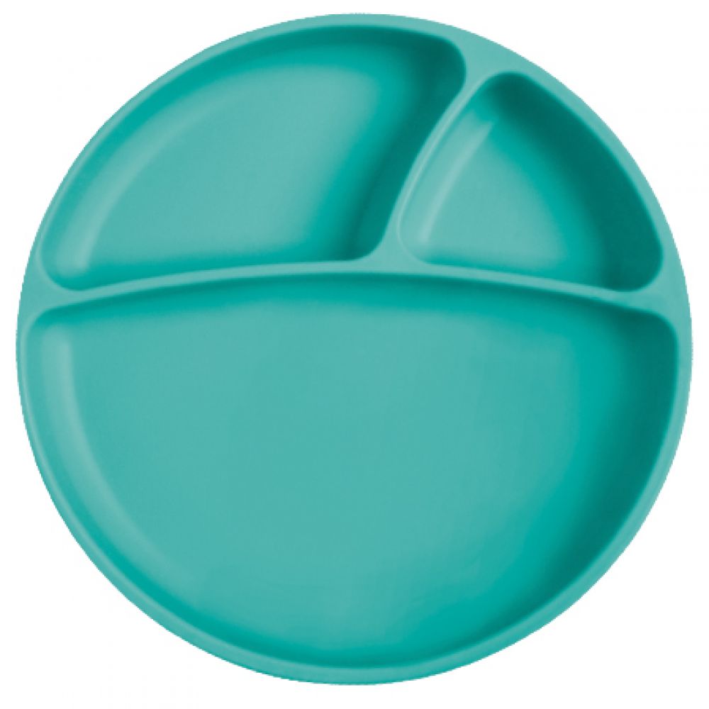 Přísavka udržuje talíř pevně a bezpečně na stole. Talíř je dělený na 3 části různé velikosti. Pomáhá při rozvoji jemné motoriky. Vhodné pro použití v troubě a mikrovlnné troubě do 200 ° C. Zdravá alternativa k plastu.