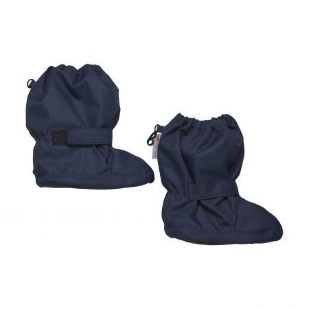 Kojenecké capáčky Minymo, vyrobeny z prodyšného a recyklovaného materiálu, který je potažen ekologickou hydroizolací BIONIC-FINISH ECO a je odolný proti větru a vodě. U kotníku je praktický pásek na suchý zip, takže se lze přizpůsobit dětské nožce.