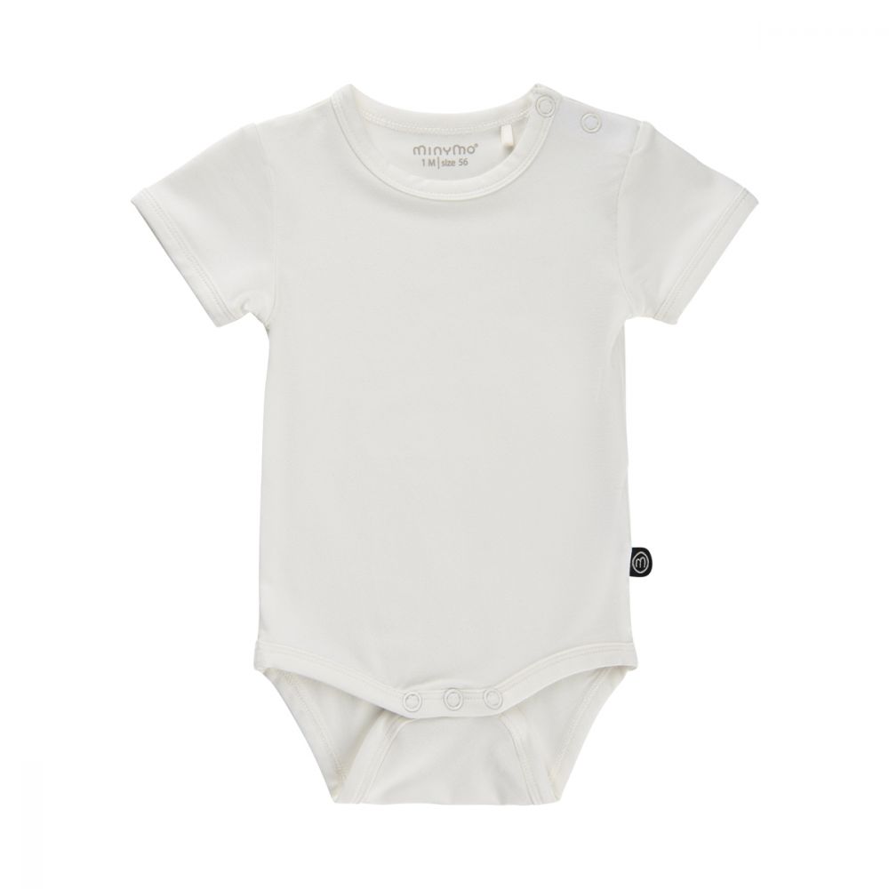 Minymo dětské kojenecké body s krátkým rukávem. Vyrobeno z materiálu s velkým podílem bambusové viskózy. Ideální, velmi oblíbený, materiál do letních dnů. Body klasického střihu se zapínáním pomocí druků u krku a mezi nožkami.