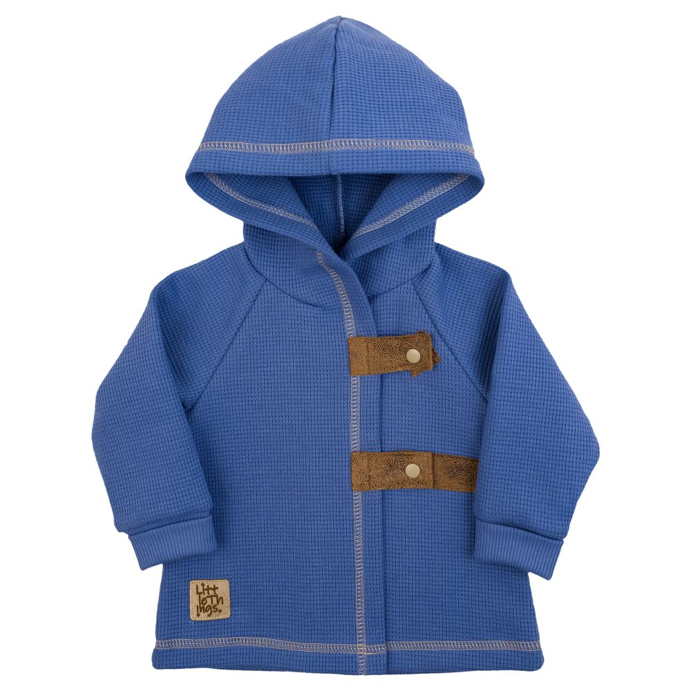 Bavlněný kabátek pro miminka i batolata.Střih doladěný k dokonalosti - pohodlný, snadno se obléká, nikde netlačí a díky ohrnovacím rukávům a prodlouženému střihu navíc rostoucí.Příjemný materiál - 100% bavlna s vaflovou strukturou..Jednoduchý styl - čistý decentní design podtržený "koženým" detailem na zapínání snadno zapadne do jakéhokoli šatníku.