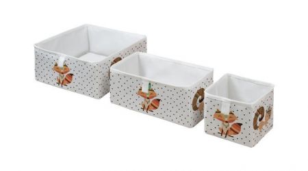 Set tří úložných boxů - ze čtyř stran potištěný, může být přeložen, s uchem na uchycení.Materiál: Vnější: 100% mikrovlákno
