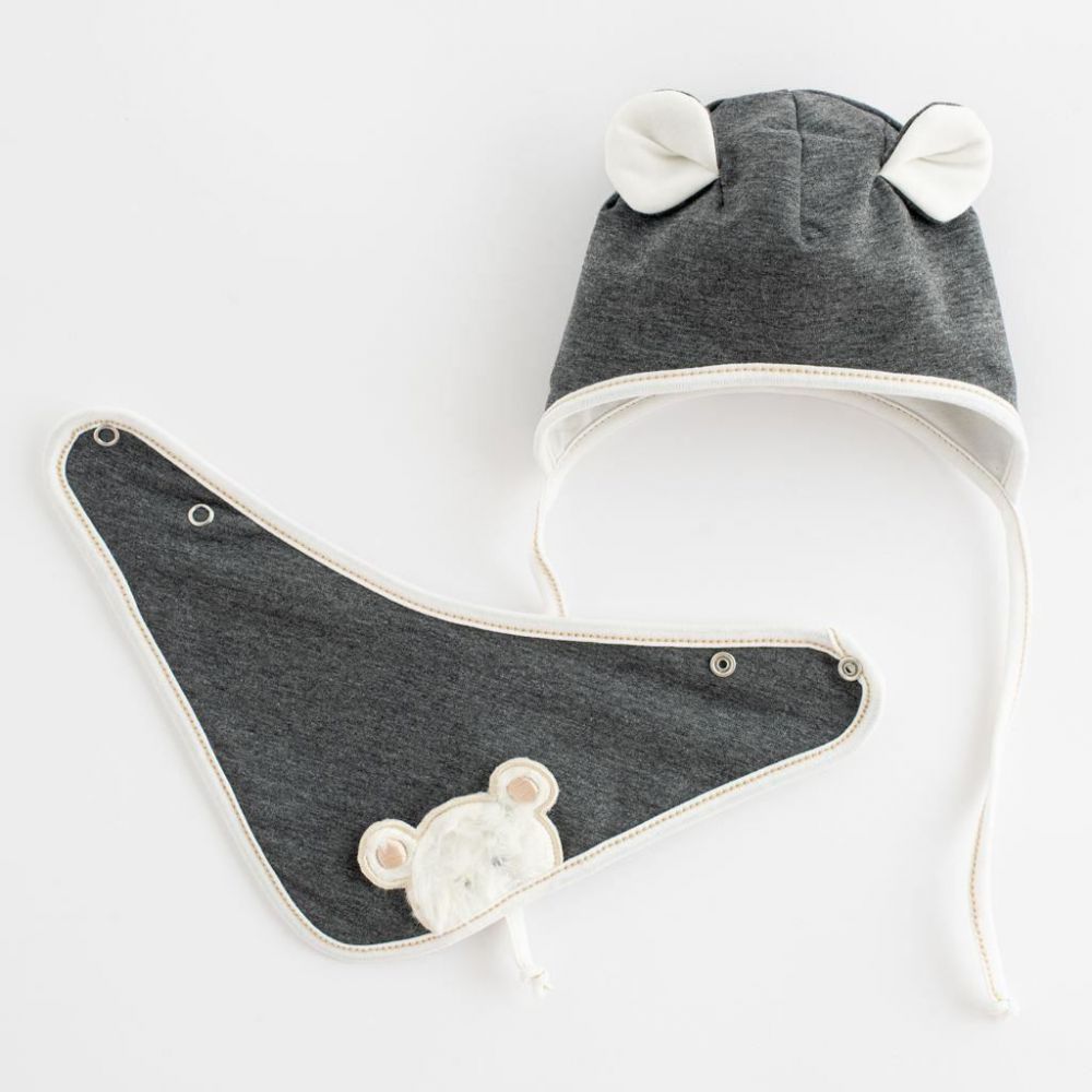 Recenze NEW BABY Jarní kojenecká čepička s šátkem na krk New Baby Sebastian šedá