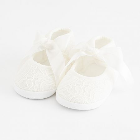 Kojenecké capáčky New Baby pro miminka. Krásné botičky jsou ve stylu dívčích sandálek s moderním vzhledem na zavazování. Capáčky přiléhají k nožičce a mají široký vnitřek, což umožňuje volný pohyb prstů a svalů. Výrobek není určen k chůzi. Jsou velmi lehké s tenkou syntetickou podrážkou. Složení: krajka:100% polyester. Podrážka: syntetický materiál PVC bez BPA. Délka vnitřní stélky 10 cm. Určeno pro děti 0-3 měsíců. Dodáváné v praktické krabičce. Upozornění: pod textilní vložkou se někdy nachází papírová vložka, která drží tvar capáčky. Před prvním použitím odstraňte tuto papírovou vložku.