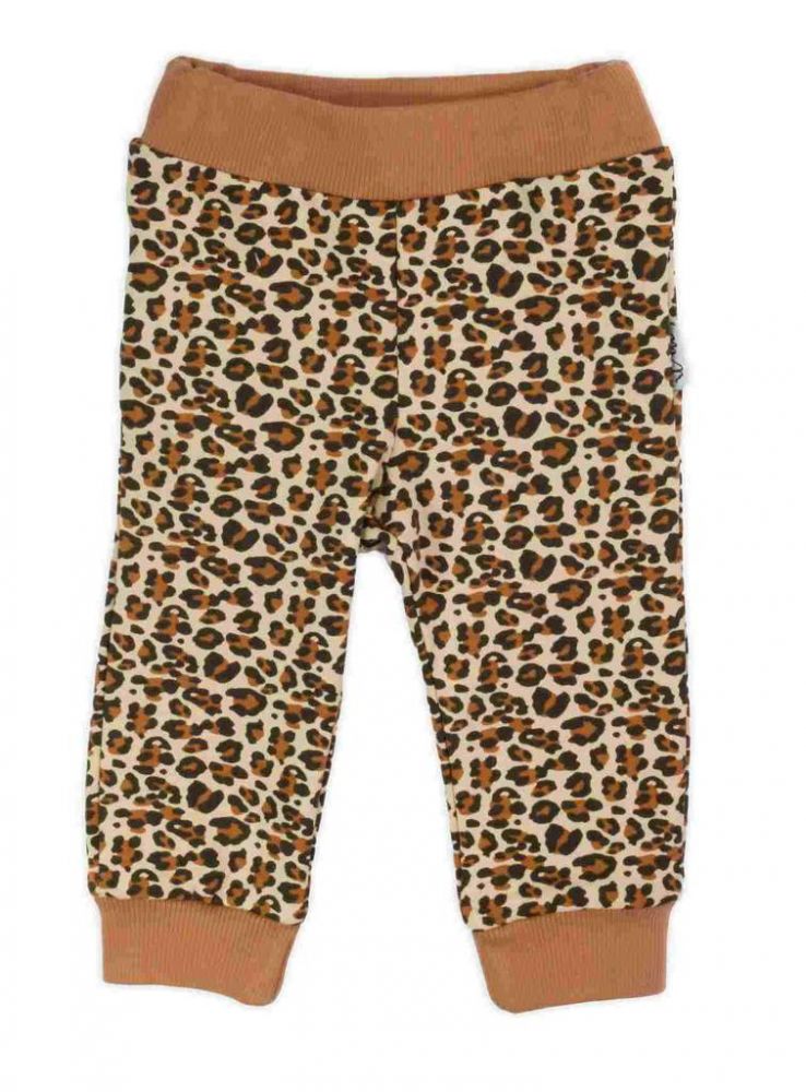 Kojenecké bavlněné tepláčky Nicol Mia hnědé Praktické dětské bavlněné tepláčky Nicol Mia zdobené vzorem leopardí srsti. Tepláčky jsou velmi praktickým kouskem oblečení pro malé děti. V pase mají širší gumičku a jsou zúžené na nohavičkách s lemem. Mia je nová dechberoucí kolekce navržena s ohledem na potřeby našich nejmenších. Materiál: 95% bavlna, 5% elastan.