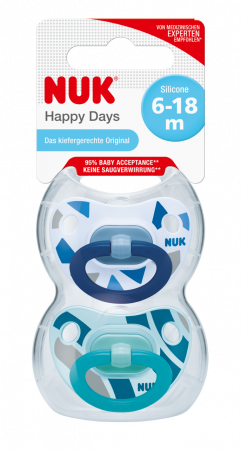 NUK Happy Days silikonový dudlík pro správný vývoj ústní dutiny dítěte • Ortodontický tvar dudlíku NUK – dudlík má stejný tvar jako matčina bradavka při kojení, dokonale padne do úst dítěte při sání• Díky užšímu a ploššímu tvaru sací části se snižuje tlak na zuby a čelisti• Plochá sací část a hladká spodní strana přinášejí dítěti příjemný pocit a podporují tak přirozené sání• Dudlík NUK má navíc svou vlastní praktickou krabičku. Ta se postará o hygienické čištění dudlíku v mikrovlnné troubě, cestování i skladování v čistotě a bezpečí• bez BPA, 2 ks v balení Dudlíky NUK jsou díky svému trendy designu skvělým módním doplňkem, který udělá z vašich malých objevitelů módní ikony. Anatomicky tvarovaná vnější část dudlíku nezpůsobuje otlačeniny, a proto je dudlík ideální pro pohodlné usínání na boku i na břiše. Průhledný silikon se snadno čistí, je chuťově neutrální, bez zápachu a je odolný vůči vysokým teplotám. Neobsahuje škodlivé látky, je odolný při vyváření a má hladký povrch. Všechny dudlíky NUK mají NUK Air System, který umožňuje únik vzduchu ze savičky, aby jej dítě nepolykalo. Díky tomuto systému zůstává dudlík měkký a snadno se přizpůsobí dětským ústům. Abychom tento pocit zintenzivnili, vyvinuli specialisté ještě lepší tvar dudlíků NUK. Sací část dudlíku napodobuje tvar matčiny bradavky při kojení, takže se při sání dokáže optimálně přizpůsobit dětským ústům. Díky úzkému a plochému tvaru sací části se tlak na čelisti i zuby snižuje, a poskytuje tak jazyku dostatek prostoru pro přirozené sací pohyby. Dudlíky NUK se dokonale přizpůsobí dětským ústům a děti si na něj velmi rychle zvyknou*, což poskytuje ještě větší pohodlí jak rodičům, tak dětem samotným. Protože je pro nás celkový vývoj dítěte velmi důležitý, chceme, aby každý dudlík značky NUK podpořil přirozený a zdravý vývoj dětské čelisti. Dudlíky NUK jsou na základě nejnovějších lékařských poznatků uzpůsobeny tak, aby dítě uklidnily ještě lépe než kdy dřív, čehož jsme dosáhli díky tvaru, který je dítěti velmi dobře známý. Kojící matky potvrzují, že používání dudlíků NUK kojení nijak neovlivňuje*. Maminky tak mají více času na odpočinek. Kromě toho používání dudlíků NUK nezpůsobuje žádné ortodontické potíže, jako např. křivé zuby či deformaci čelisti. Plochý a úzký tvar sací části dudlíku minimalizuje tlak na zuby i čelist a nechává v ústech spoustu místa pro jazyk, a tedy i pro přirozené sací pohyby. Díky tomu jsou dudlíky NUK vysoce hodnocené a doporučované porodními asistentkami, pediatry i ortodontisty. Výsledky testů mluví i ve prospěch nového typu dudlíku NUK: 100 % oslovených ortodontistů potvrzuje, že nezpůsobuje žádné potíže**, 95 % dětí tento dudlík rychle přijme*, 90 % maminek jeho používání doporučuje* a 92 % kojících matek potvrzuje, že používání dudlíku kojení nijak neovlivňuje. * Nezávislý průzkum trhu, 307 oslovených matek, Německo 2017 ** Nezávislý průzkum trhu, osloveno 50 ortodontistů, 50 pediatrů a 50 porodních asistentek, Německo 2017