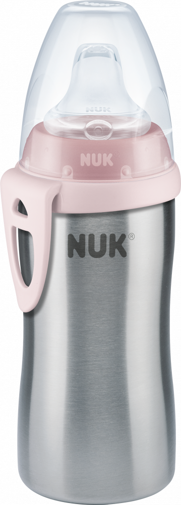 NUK lahvička na učení z nerezové oceli má dobře těsnicí silikonové pítko, které je obzvláště měkké a které se vyznačuje osvědčeným antikolikovým systémem Anti-Colic Air System. Je vhodné pro děti přibližně od 6 do 18 měsíců a poskytuje příjemný a známý zážitek z pití. Stejně jako učící lahvičky NUK First Choice má i tato lahvička na učení ergonomická držátka, která mohou malé dětské ručky snadno uchopit. Objem hrnečku je 215 ml, k dispozici jsou dvě barevná provedení v atraktivním balení.