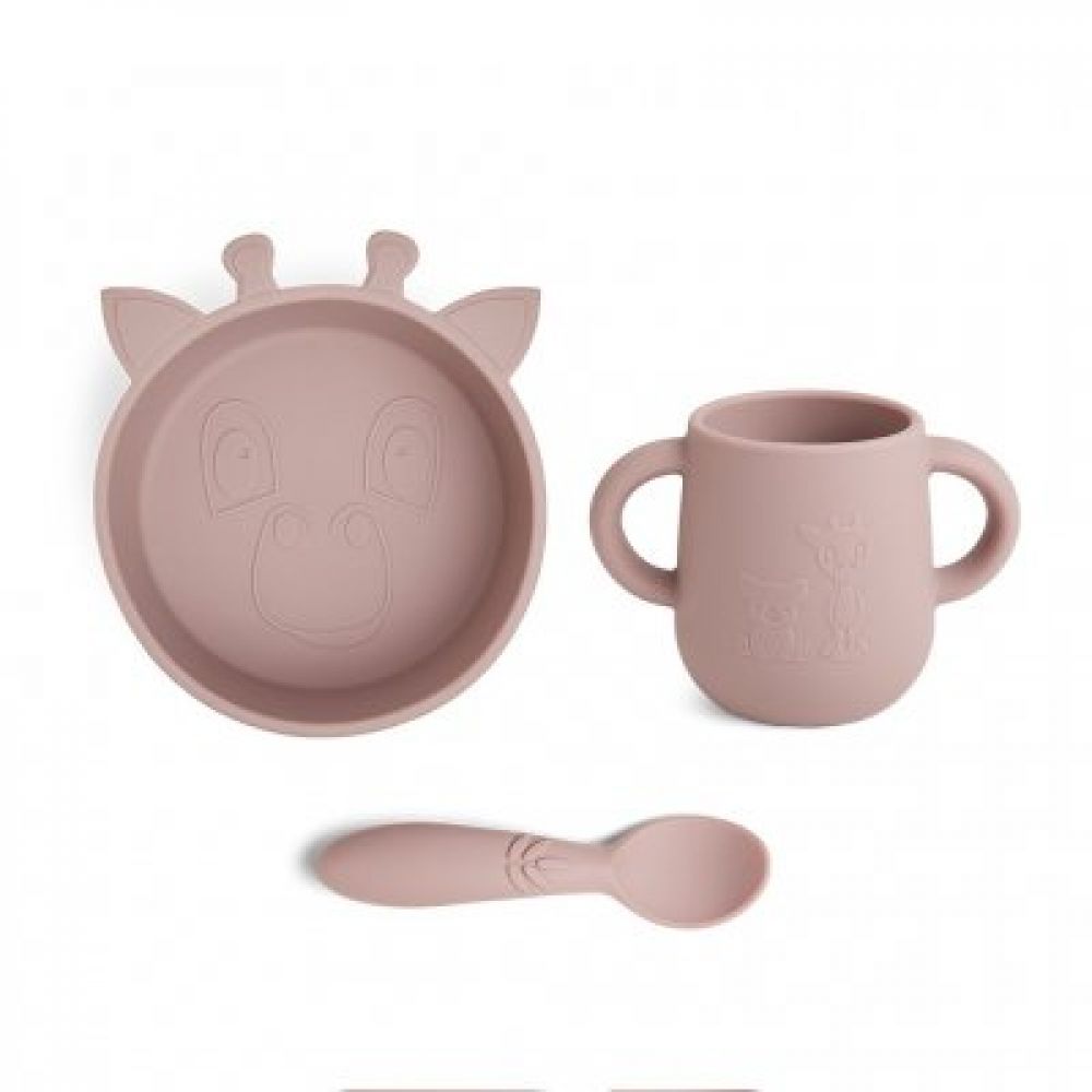 Jídelní set obsahuje misku, hrneček a lžičku roztomilý design set je vyroben z LFGB certifikovaného silikonu bez jakýchkoliv škodlivých chemikálií silikon je měkký a praktický je vhodný do myčky nádobí při pádu na podlahu se nerozbije rozměry: miska: 11,5 x 4,5 cm, lžička: 10,5 x 2,8 cm, hrneček: 145 ml materiál: potravinářský silikon