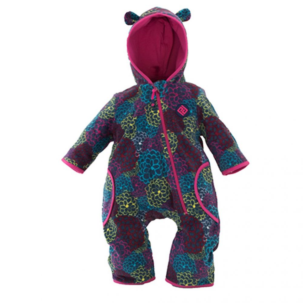 Microfleecový podšitý overal s kapucí v trendy barvách holka/kluk. Overal má ohrnovací rukávy a nohavice.   Materiál: Microfleece (100% polyester)