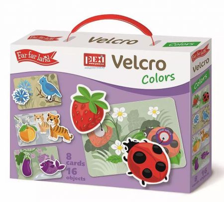 Velcro skládačky - Barvy (Colors) Naučná skládačka pro děti od 36 měsíců do 6 let.Jakou barvu má tvoje krásná jahůdka nebo zdravý lilek?CO JE UVNITŘ?Sada obsahuje 8 pružných plastových destiček se suchým zipem a 16 samostatných dílků, které umístíte na destičky pomocí suchého zipu. Díky této vychytávce jednotlivé díly jen tak nespadnou a budou držet na správném místě. Všechny části jsou vyrobené z odolného, ale tenkého plastu se speciální povrchovou úpravou, která je dětem příjemná na dotek.JAK HRÁT?Berte jednotlivé dílky jeden po druhém a povídejte dětem co na nich je.Potom vezměte destičku s obrysy předmětů a vybídněte dítě, aby našlo správný předmět pro každý obrys a připevnilo ho pomocí suchého zipu na správné místo.BENEFITY:- zlepšuje motorické schopnosti- trénuje vyjadřování mluvenou řeč- učí barvy- upevňuje udržení pozornostiPři hraní s Velcro se budete učit barvy, trénujete mluvení a slovní zásobu, jemnou motoriku a koordinaci ruka-oko.