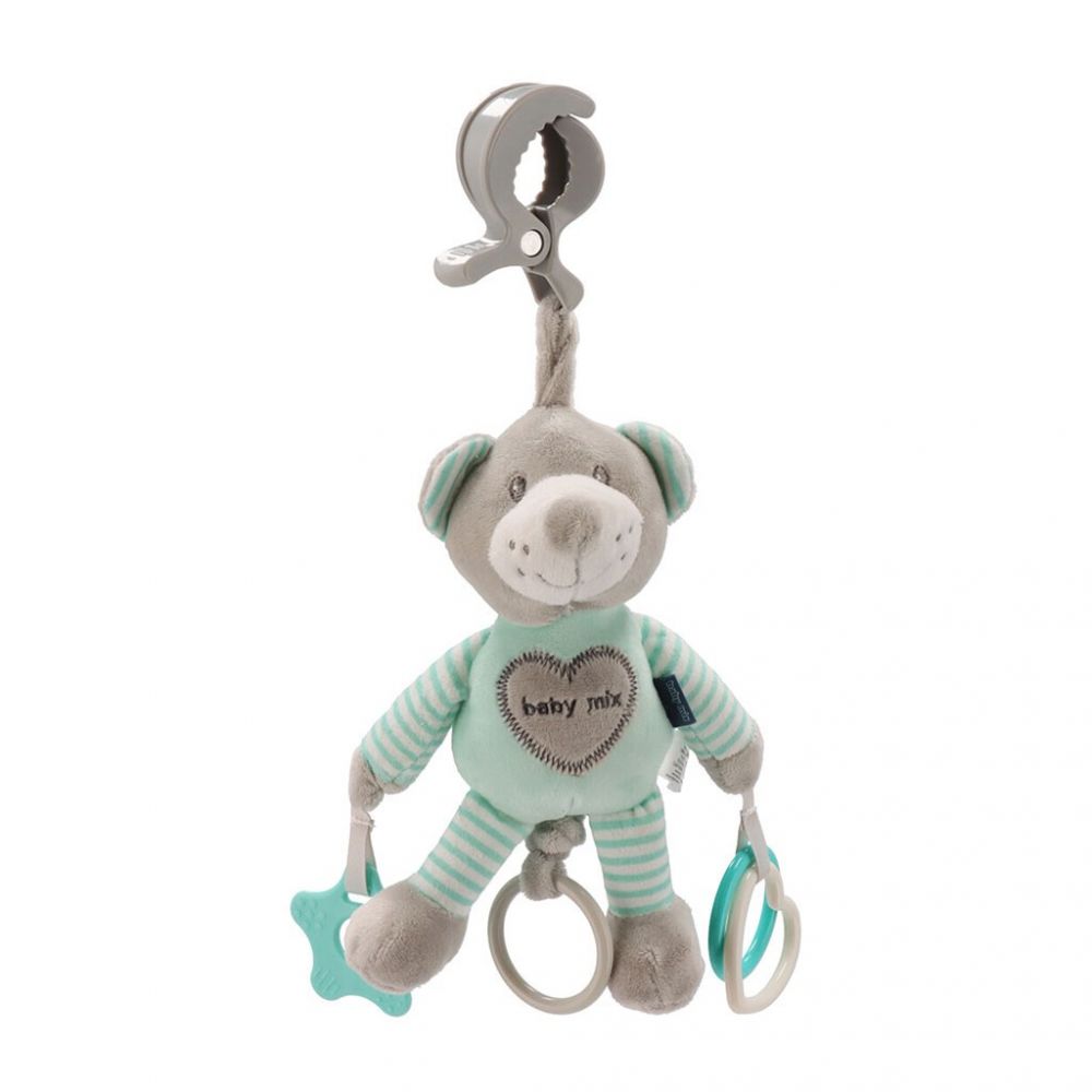 Krásná barevná plyšová hračka Baby Mix ve tvaru medvídka pro miminka. Hračka má barevné kousátka a plastový klip na uchycení hračky ke kočárku, po natáhnutí vibruje. Výška cca 22 cm. Vhodné pro děti od prvních dnů života.