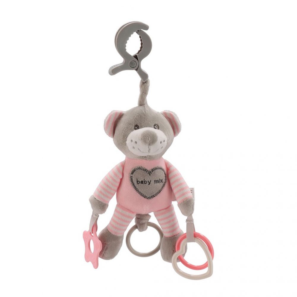 Krásná barevná plyšová hračka Baby Mix ve tvaru medvídka pro miminka. Hračka má barevné kousátka a plastový klip na uchycení hračky ke kočárku, po natáhnutí vibruje. Výška cca 22 cm. Vhodné pro děti od prvních dnů života.