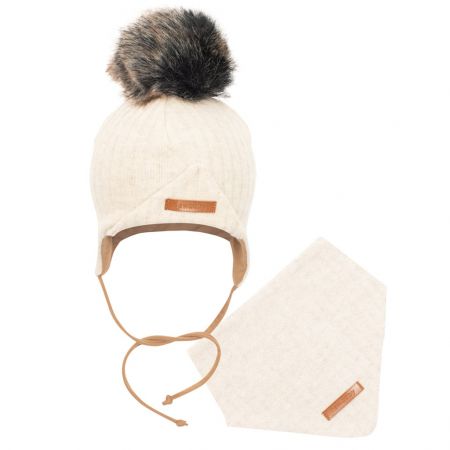 Recenze Podzimní kojenecká čepička s šátkem na krk New Baby Special One béžová 56 (0-3m)