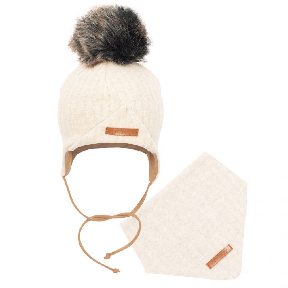 Recenze Podzimní kojenecká čepička s šátkem na krk New Baby Special One béžová 68 (4-6m)