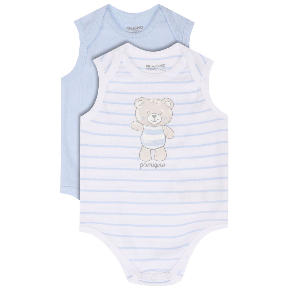 Primigi dětské kojenecké body bez rukávů - set dvou kusů. Vyrobeny ze 100% bavlny, velmi pohodlné, nedráždí dětskou pokožku. Zapínání je klasické pomocí druků mezi nožkami. Jedno s pruhovaným vzorem, druhé jednobarevné, zdobené roztomilým dětským obrázkem.