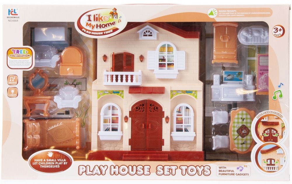 Výhody produktu: Dům má světelné a zvukové funkce, je k dispozici ve dvou barevných provedeních dle dodávek zboží, dveře mají funkci otevírání. Jednou z oblíbených forem hry pro každé dítě je nepochybně hra doma. S chatou MEGA CREATIVE bude tato zábava nesmírně úspěšná! Sada obsahuje: skládací dům, nábytek do domu / obývacího pokoje: stůl + 4 židle, skříň, komoda, vitrína s TV a audio zařízením, toaletní stolek, křeslo, pohovka, truhla na oblečení. Vyžaduje 2 baterie xAALR06 - není součástí dodávky. Hračka je určena pro děti od 3 let. Výrobek je vyroben z plastu. Rozměry balení (D x V x H) [cm]: 50,5x31x11 Hmotnost produktu v balení: {kg.} 0,89 kg. Sada je zabalena v krabici s okénkem.