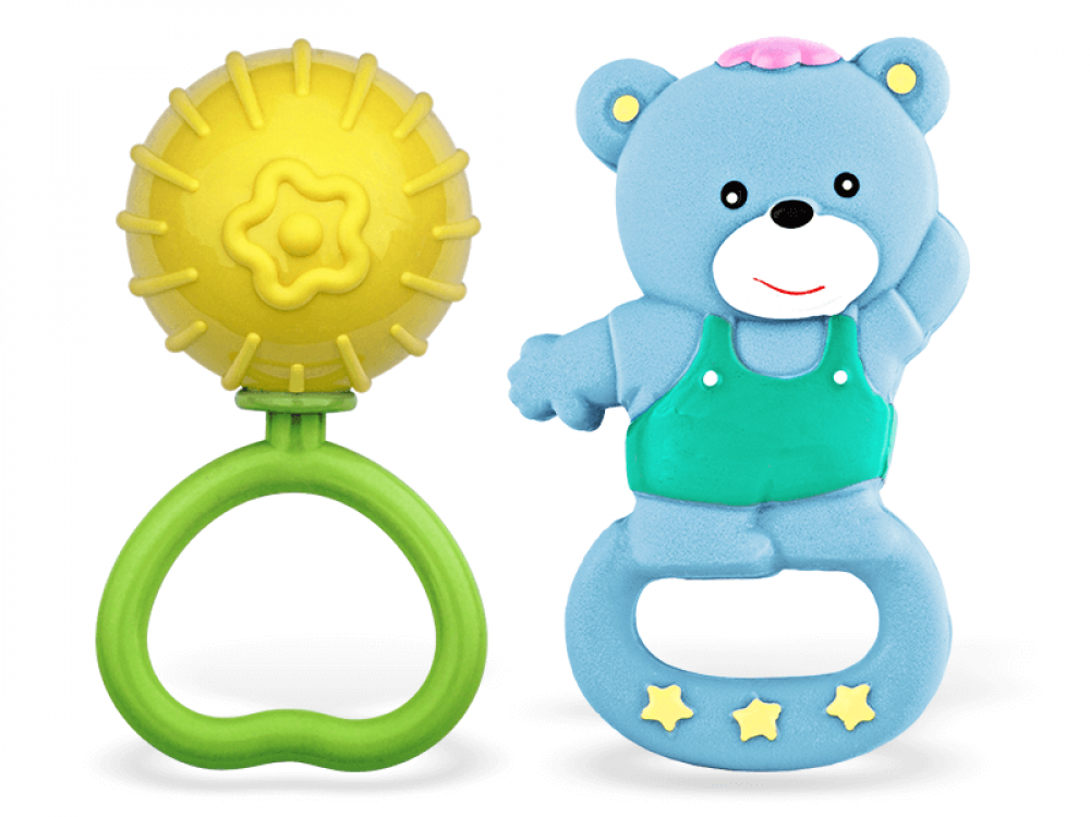 Praktická sada- gumové pískací zvířátko a chrastítko pro nejmenší děti. Chrastítko dokonale stimuluje sluchové funkce vašeho dítěte. Kousátka přinášejí dětem úlevu při růstu zubů. Elastický materiál a výčnělky dokonale masírují dásně.