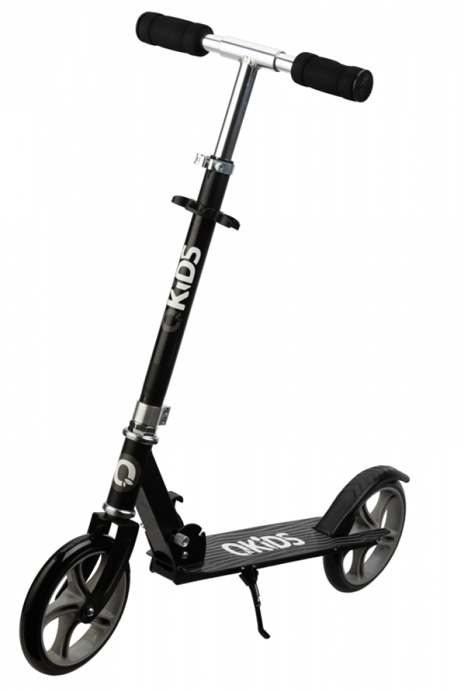 QKIDS - Skládací koloběžka WEISS Když se najednou přes noc z vašeho dítěte stane teenager a vy už nemáte nápad na dárek, máme pro vás skvělou zprávu!Velká stabilní koloběžka se bude hodit jako jedinečné překvapení k narozeninám, svátku nebo při příležitosti Dne dětí!Koloběžka je určena pro starší děti, teenagery a dospělé. Vyrobeno z lehké a odolné hliníkové slitiny, maximální nosnost byla stanovena do 100 kg. KolaKoloběžka má velká kola o průměru 200 mm. Vyrobeno z odolného polyuretanu je činí velmi odolnými a zároveň flexibilními, což příznivě ovlivňuje kvalitu jízdy. Na zadním kole je brzda, toto řešení zkracuje reakční dobu na minimum, čímž se zvyšuje úroveň bezpečnosti. Kromě toho funguje také jako blatník, který poskytuje ochranu před nečistotami.Zabudovaná ložiska ABEC7 snižují tření způsobené odvalováním koleček, díky čemuž se kolečka nezasekávají a umožňují tak rychlou a plynulou jízdu.Široká protiskluzová platforma byla navržena tak, aby noha během jízdy neklouzala, čímž se zvyšuje pocit bezpečí a jistoty během jízdy. VolantObdobí dospívání je období, kdy se dítě začíná rapidně měnit, zejména výškově. Třístupňové nastavení polohy volantu bude perfektní zejména v tomto období. Výška je nastavitelná v rozmezí 82-100 cm, což umožňuje používat koloběžku po dlouhou dobu.Pěnové rukojeti zabraňují sklouznutí rukou při jízdě a poskytují ochranu před nadměrnými vibracemi. Hlavní prvky jsou vyrobeny z hliníkové slitiny, čímž zajišťují lehkost a odolnost. Koloběžka je skládací a její velkou výhodou je její hmotnost (pouze 3,5 kg), takže není problém při jejím přenášení přes schody nebo při balení do auta.Stojan umožňuje opření koloběžky, čímž se snižuje riziko poškození, a její centrální uspořádání zabraňuje jejímu náhodnému převrácení. Široká protiskluzová platforma zlepšuje komfort jízdy a buduje pocit bezpečí.Vyhovuje normě EN 14619Zajímavý designDíky jednoduchému minimalistickému designu, kombinaci klidných a odvážných barev koloběžka vynikne všude, kde se objeví a vaše dítě se bude cítit jako jedinečný majitel nádherného vozidla. Rozměry v rozloženém stavu: 88x100x36 cmVěk: od 6 let Sada obsahuje1. Kola2. Brzdu3. Širokou opěrku nohou4. Nastavitelný rám5. Pěnové rukojeti6. Volant7. Stojan