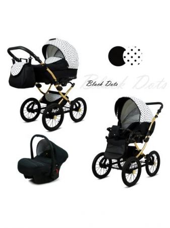 Krásný kočárek Margaret Gold 3v1 od značky Raf-pol na hliníkovém podvozku na čtyřech nafukovacích kolech ve zlaté barvě. Kočárek se vyznačuje hlavně svým moderním designem a také skvělým odpružením, které umožňuje mamince pohodlně houpat své dítě. Skládá se z podvozku s koly, hluboké korby a sportovní nástavby. Autosedačka je v ceně kočárku. Výbava: taška na pleny, pláštěnka, moskytiéra a držák na láhev.