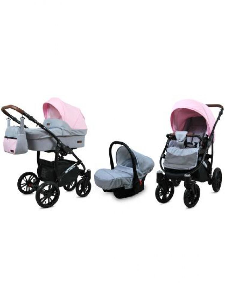 Kočárek Optimal 3v1 značky Raf-Pol má železný rám a potah z prodyšného materiálu, který je lehce omyvatelný. Korbička a sportovní nástavba se dá upevnit po i proti směru jízdy. Možnost výběru mezi bílým a černým rámem. Výběr rámu zvolíte překliknutím barvy rámu. Skládá se z podvozku s koly, hluboké korby a sportovní nástavby. Autosedačka je v ceně kočárku . Ke kočárku lze dokoupit další příslušenství za zvýhodněné ceny. Výbava: taška na pleny,