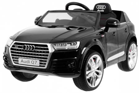 Nový model Audi Q7 přináší řadu senzačních inovací. Dva silné, elektrické motory (2x 45W / 12V) se starají o náhon obou zadních kol, díky čemuž je autíčko vhodné i pro řádění v terénu. Jízda na 3 rychlostní stupně vpřed a 3 vzad. Vozítko je možné ovládat dvěma způsoby - manuálně a dálkovým ovládáním. Při manuálním řízení se autíčko rozjede stisknutím nožního pedálu, po uvolnění pedálu autíčko samo zabrzdí. S řízením si tak bez problémů poradí i ti nejmenší, začínající řidiči. Nový 2.4G bluetooth dálkový ovladač má před manuálním řízením přednost - autíčko je možné zabrzdit i při stlačeném pedálu. Nad vozítkem tak máte plnou kontrolu. Audi Q7 NEW je vybavená senzačním LED osvětlením - denní svícení, svítící přední a zadní světla, mlhovky, osvětlené palubní přístroje, svítící stupeň zařazené rychlosti a LED display s voltmetrem. Nesmí chybět ani zvukové efekty jako klakson, zabudovaná muzika, zvuky motoru, startování a další. Pro ještě větší zážitek z jízdy je autíčko vybavené funkčním FM rádiem a vstupy pro MP3, USB a SD (paměťovou) kartu, díky čemuž je v autíčku možné přehrávat hudbu například z flashky. Hlasitost zvukových efektů je možné regulovat, stejně tak lze zvuky i osvětlení vypnout. Autíčko má otvíratelné dveře. Gumová kola z měkčeného EVA materiálu a odpružení přední i zadní nápravy zajišťují příjemnou jízdu. Pohodlná, koženková sedačka je opatřená stavitelným bezpečnostním pásem. Kromě občasného mytí a dobíjení nevyžaduje autíčko žádnou jinou údržbu.