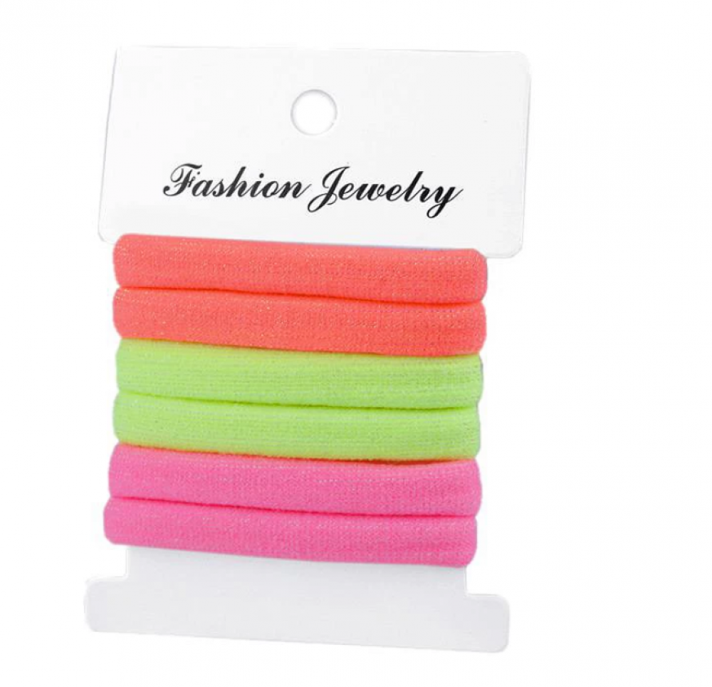 Recenze Sada gumiček do vlasů s lurexem 6 ks Neonové