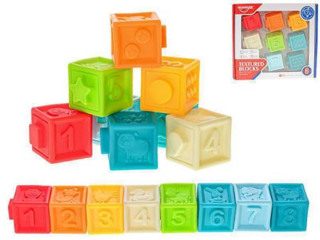 Sada kostek 5x5 cm s texturou 8 ks. Sada kostek 5x5 cm s texturou 8 ks.Vhodné pro děti od 6 měsíců.