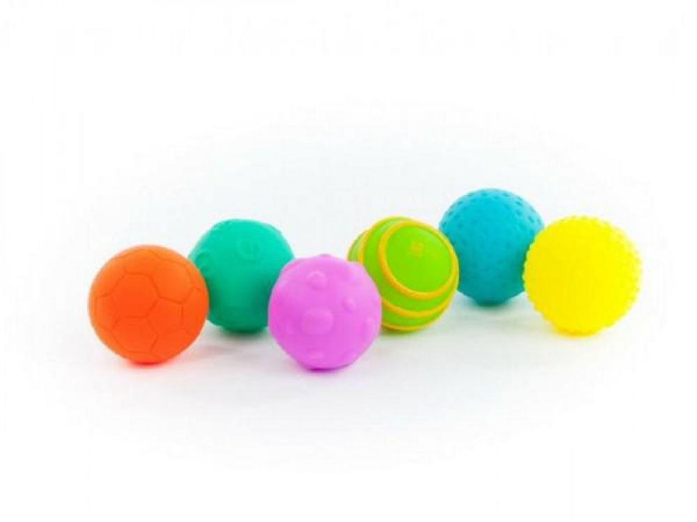 Sada šesti různobarevných míčků o velikosti 6 cm. Míčky jsou vyrobeny z měkkého a na omak příjemného materiálu. Každý míček má na svém povrchu jinou texturu, ta děti stimuluje k hraní. Vhodné pro děti od 6 měsíců. Průměr jednoho míčku je 6 cm, balení obsahuje 6 ks míčků různé textury a barvy Sada šesti různobarevných míčků o velikosti 6 cm. Míčky jsou vyrobeny z měkkého a na omak příjemného materiálu. Každý míček má na svém povrchu jinou texturu, ta děti stimuluje k hraní. Vhodné pro děti od 6 měsíců. Průměr jednoho míčku je 6 cm, balení obsahuje 6 ks míčků různé textury a barvy
