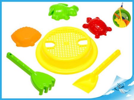 Sada na písek obsahuje sítko, lopatku a hrábě a 3 ks formiček ve dvou barevných provedeních.Vhodné pro dti od 10 měsíců. Sada na písek obsahuje sítko, lopatku a hrábě a 3 ks formiček ve dvou barevných provedeních.Vhodné pro dti od 10 měsíců.