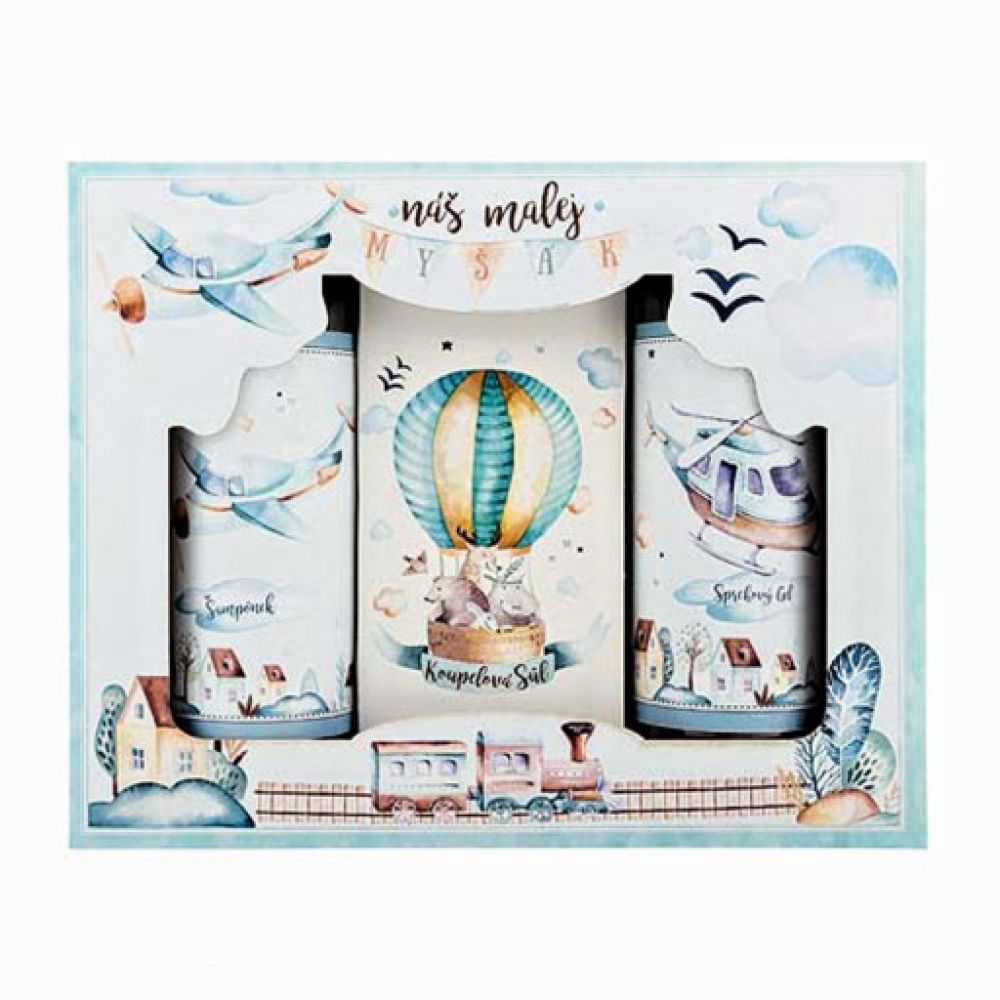 Balení obsahuje sprchový gel 100 ml, vlasový šampon 100 ml a koupelová sůl 110g.