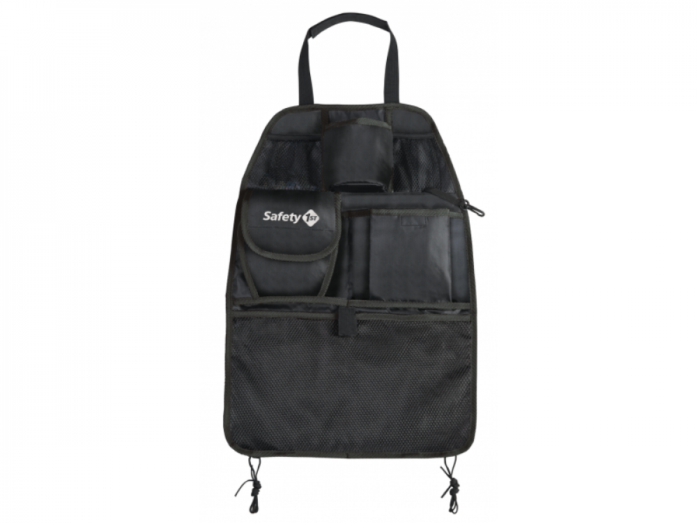 Praktický organizér na sedadlo Safety 1st nabízí prostor pro ukládání drobností, hraček a občerstvení během cestování autem. Pomáhá udržet vozidlo uklizené a dětí mají vše potřebné na dosah ruky. Organizér zároveň chrání zadní stranu předního sedadla před znečištěním od dětských bot. Organizér je vybaven množstvím kapes i speciálním držákem na láhev a klipem na dudlík. Univerzální velikost je vhodná do většiny aut. Organizér se snadno instaluje na sedadlo řidiče nebo spolujezdce. Možno prát v pračce. Rozměry: 54 x 38 cm
