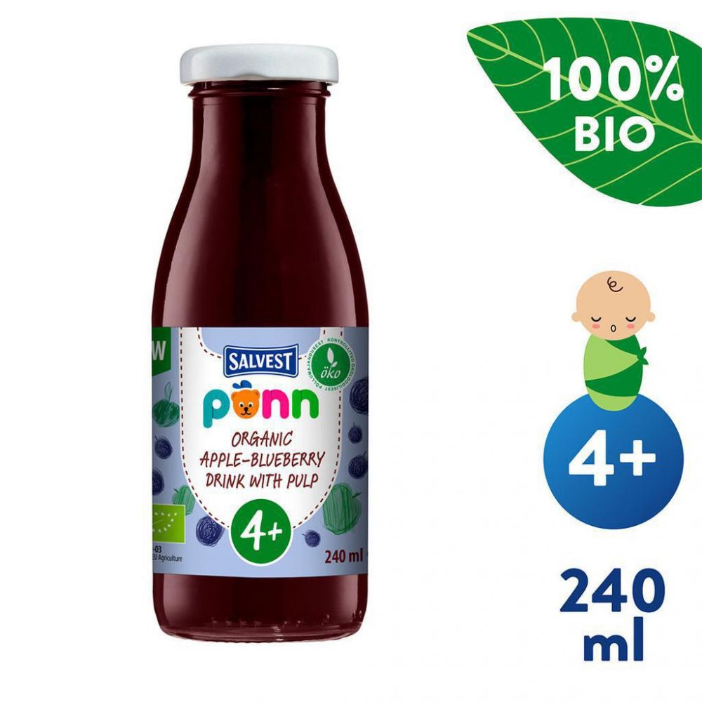 Tato lahodná šťáva pro děti je vyrobena z borůvek a jablíček pěstovaných v podmínkách kontrolovaného ekologické zemědělství. Tato lahodná šťáva pro děti je vyrobena z borůvek a jablíček pěstovaných v podmínkách kontrolovaného ekologické zemědělství. Neobsahuje přidaný cukr, pouze šetrně zpracované ovocné pyré a vodu. Zkrátka jednoduché složení bez umělých barviv nebo aromat. Bude se Vám hodit jako lehká a osvěžující svačinka na doma, v parku na žížu nebo na výletě za dobrodružstvím. Doporučeno pro miminka od ukončeného 4. měsíce věku. Vyrobeno s láskou a respektem k životnímu prostředí.- Vyvinuto přední pediatričkou Reet Raukas- Pečlivě vybrané suroviny- Ve spolupráci s lokálními farmáři v EstonskuPrémiové produkty Salvest Ponn jsou vyráběny ve spolupráci s pediatričkou Reet Raukas a testovány estonskými miminky. Většina ingrediencí je získávána od lokálních dodavatelů vzdálených do 100 km od místa výroby, což zaručuje společnosti stoprocentní kontrolu nad kvalitou a čerstvostí výrobků a snižuje uhlíkovou stopu.Složení: *jablečné pyré 44 %, voda, *borůvkové pyré 16 %. *z ekologického zemědělství. Bez lepku.Výživové údaje na 100 g: energie 125 kJ / 30 kcal, tuk 0,2 g, z toho nasycené mastné kyseliny 0,2 g, sacharidy 6,0 g, z toho cukry 5,7 g (obsahuje přirozeně se vyskytující cukry), bílkoviny 0,2 g, sůl 0,0 g (obsah soli je dán množstvím přirozeně se vyskytujícího se sodíku obsaženého v surovinách).Návod k použití: Vhodné k přímé konzumaci. Před použitím promíchejte. Obal nedávejte dětem ke hraní. Dodržujte pokyny.Minimální trvanlivost do: viz zadní strana obalu. Skladujte při pokojové teplotě. Po otevření skladujte v lednici a spotřebujte do 3 dnů.Výrobce: AS Salvest, Aruküla tee 3, 51017, Tartu, Estonsko.Distributor: Health Academy s. r. o., Zbraslavská 22 / 49, 159 00, Praha, Česká republika / Praga, Republika Czeska / Prága, Csehország.Ovocný nápoj z jablečného a borůvkového pyré pro zvláštní výživu dětí od ukončeného 4. měsíce, pokud pediatr neurčí jinak.