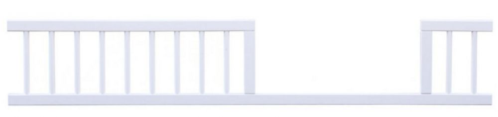 Válendová bočnice k postýlce 140 cm - bílá Bočnice je vyráběna z borovicového dřeva. Postýlky Scarlett vyráběné od 1. 3. 2014 jsou připraveny k montáži bočnice. Bočnici je možné, za použití vhodného nářadní, doplnit k jakékoli postýlce o rozměru 140 x 70 cm z naší nabídky. Cena je uvedena za jednu bočnici. V případě použití bočnic z obou stran postýlky je třeba objednat 2 kusy.