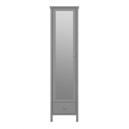 Šedá skříň se zrcadlovými dveřmi, ve skandinávském stylu bydlení. Uvnitř skříně jsou poličky, ve spodní části zásuvka. Elegantní skříň vhodná do ložnice, nebo do předsíně. Jedinečné zpracování a kvalitní materiál. Rozměry: výška 195 cm, šířka 49,3 cm, hloubka 19,6 cm. Barevné provedení: grey. Váha: 51 kg. Skříň dodáme do vašeho domova rozloženou, zabalenou v krabici s návodem na sestavení.