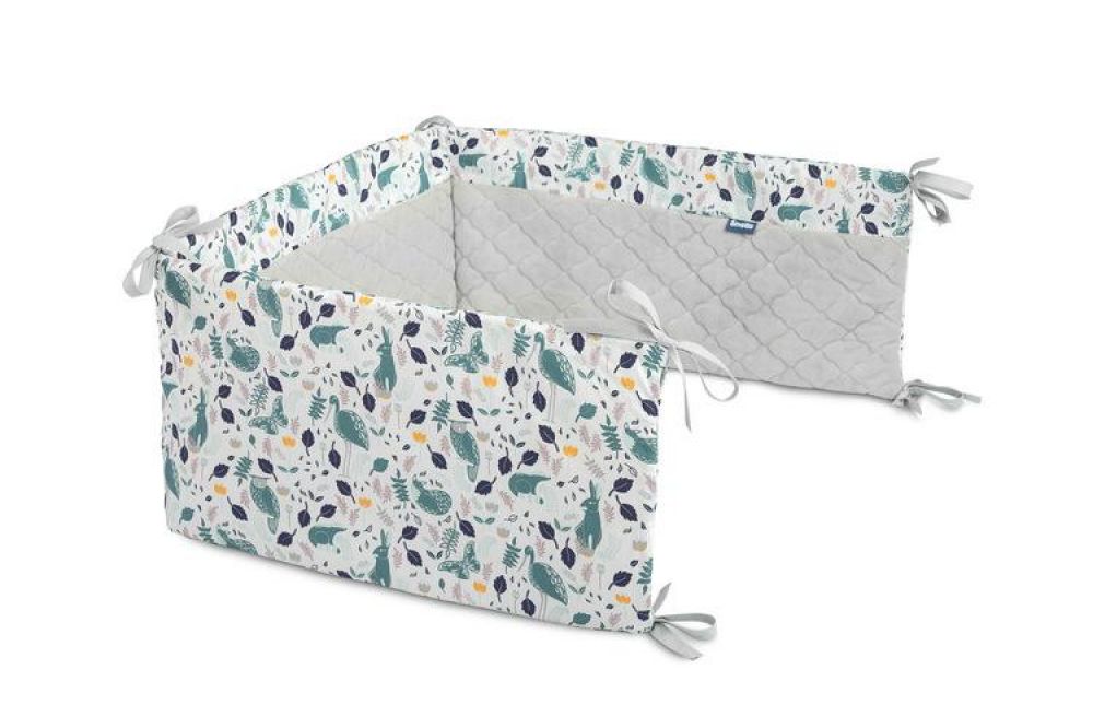 Ochraniacz do łóżeczka Plusz Karo jest doskonałym dodatkiem do wyprawki dla niemowlaka. Wypełnienie z owaty ochroni dziecko przed urazami podczas poruszania się po łóżeczku i odgrodzi od zimnej ściany, a piękne materiały ozdobią pokoik maluszka. Jedna strona ochraniacza została wykonana z miękkiej bawełny z nadrukiem, a druga to wysokiej jakości, milutki w dotyku plusz. Utrzymanie ochraniacza we właściwej pozycji zapewniają liczne tasiemki. Zaprojektowany został do łóżeczka o wymiarach 120x60 cm. Dane techniczne: Przedział wiekowy: 0+ Wymiary: 180x30 cm (+/- 2 cm) Skład materiałowy: Warstwa zewn.: 100% Bawełna/100% Poliester (plusz) Otulina: 100% Poliester Sposób konserwacji: Prać ręcznie. Maksymalna temperatura prania to 30O C. Nie wybielać. Nie czyścić chemicznie Prasować przy temp. max. 110 OC Pakowanie: 1 szt. Produkt polski Najważniejsze cechy: Zabezpiecza dziecko przed uderzeniem o szczebelki łóżeczka Gęsto rozłożone tasiemki zapewniają trwałe przymocowanie do szczebelków Cienkie wypełnienie ułatwia przechowywanie i zabranie w podróż Długość: 180 cm Poszycie: 100% bawełna/100% poliester Wypełnienie: włókna silikonowe (100% poliester) Wyprodukowany w Polsce
