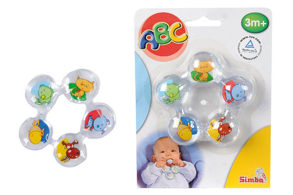 Kousátko se skládá z 5-ti průhledných "kuliček" naplněných vodou a spojených do kruhu. Na každé kuličce je jiný obrázek zvířátka. Ideální pro utišení bolavých dásní při prořezávání prvních zoubků.