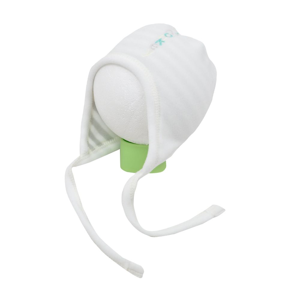 Heboučká dvojitá smetanová čepička s nápisem HappyMonkey, vyrobená z hřejivého fleecu. Díky praktickému střihu schová ouška i tvářičky. Tkaničky se mohou zavázat nebo nechat volně.