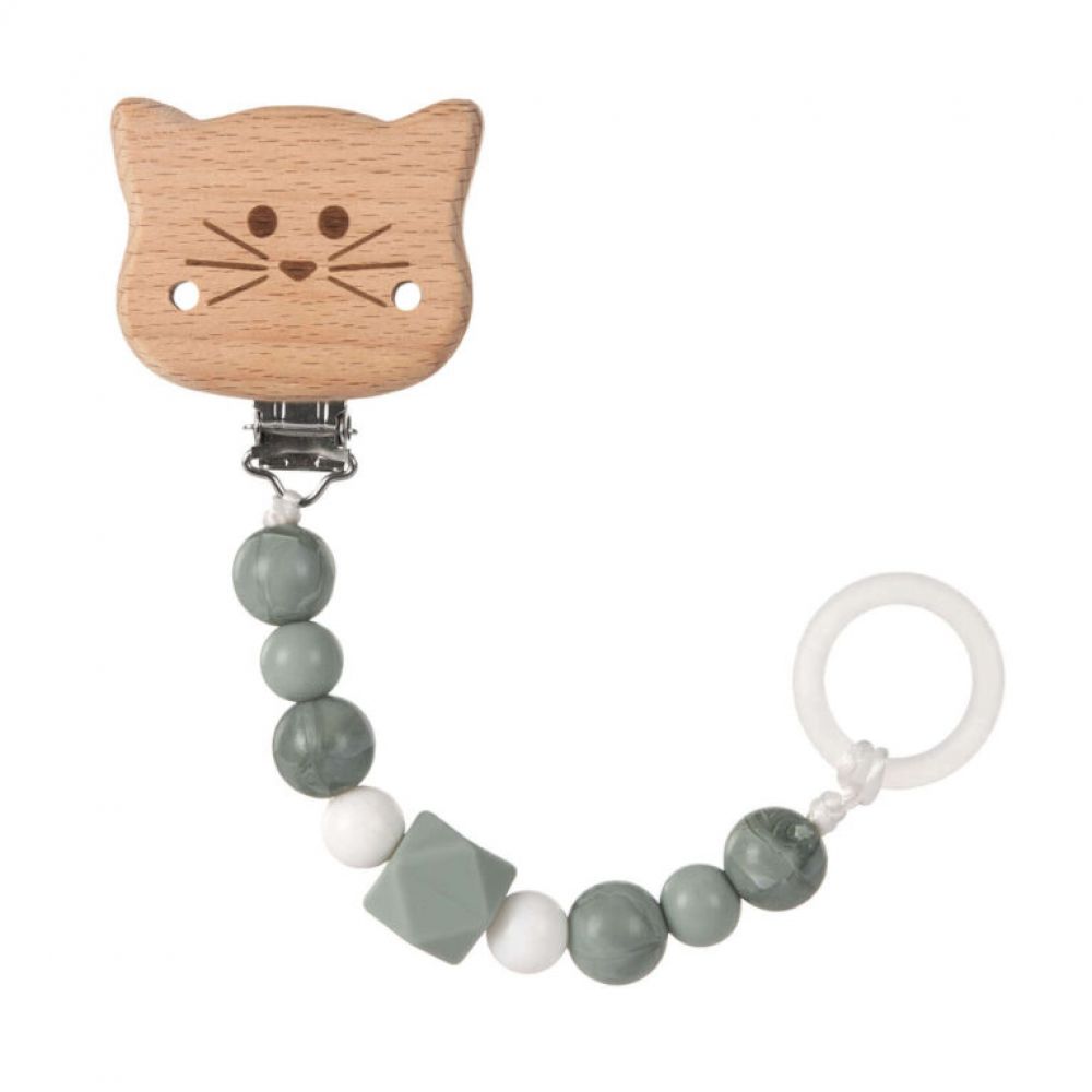 Recenze Soother Holder Wood/Silicone Little Chums cat