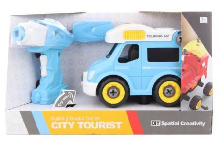 Šroubovací karavan na dálkové ovládání. Karavan lze sešroubovat pomocí přiloženého šroubováku nebo vrtačky. Z vrtačky lze vyndat motorek, který se vloží do karavanu a ten poté jezdí pomocí ovládání dopředu a dozadu. karavan také vydává zvuky. Napájení na 4 AA baterie (nejsou součástí) a na 3 AG13 baterie (jsou součástí). Rozměry karavanu cca 18 x 13,5 x 8,5 cm. Rozměry balení cca 33,5 x 19,5 x 13,5 cm. Věk 3+ Šroubovací karavan na dálkové ovládání. Karavan lze sešroubovat pomocí přiloženého šroubováku nebo vrtačky. Z vrtačky lze vyndat motorek, který se vloží do karavanu a ten poté jezdí pomocí ovládání dopředu a dozadu. karavan také vydává zvuky. Napájení na 4 AA baterie (nejsou součástí) a na 3 AG13 baterie (jsou součástí). Rozměry karavanu cca 18 x 13,5 x 8,5 cm. Rozměry balení cca 33,5 x 19,5 x 13,5 cm. Věk 3+