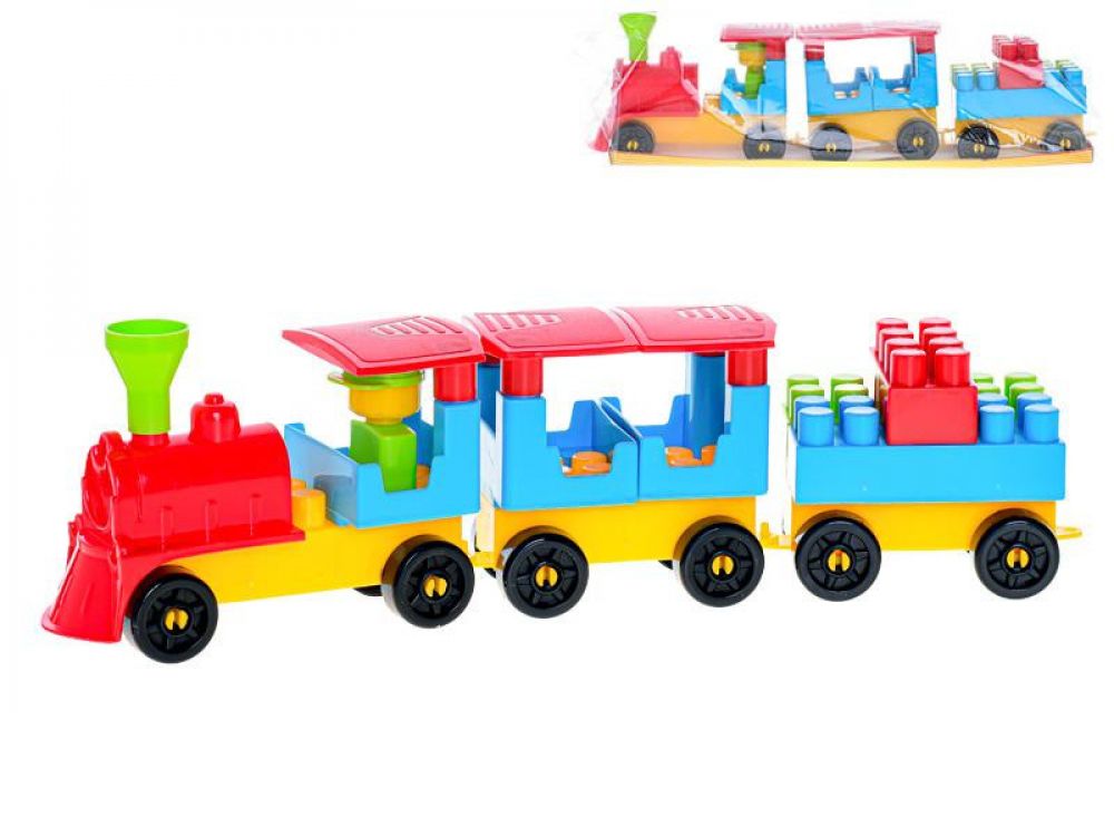 Stavebnice vláček se dvěma vagóny a nálepkami. Stavebnice vláček se dvěma vagóny a nálepkami.Vhodné pro děti od 3 let.