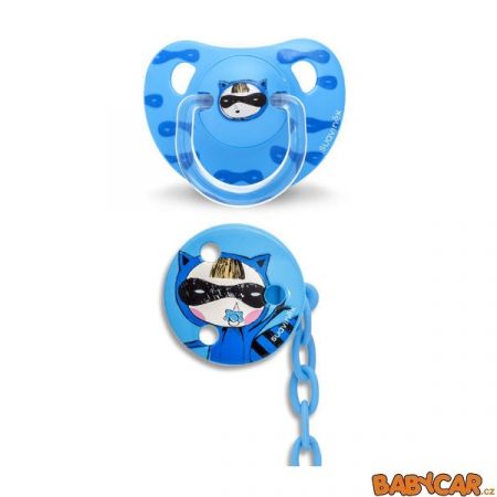 SUAVINÉX latexový dudlík ANATOMICKÝ +6m + klip na dudlík KULATÝ Kočka/Modrá