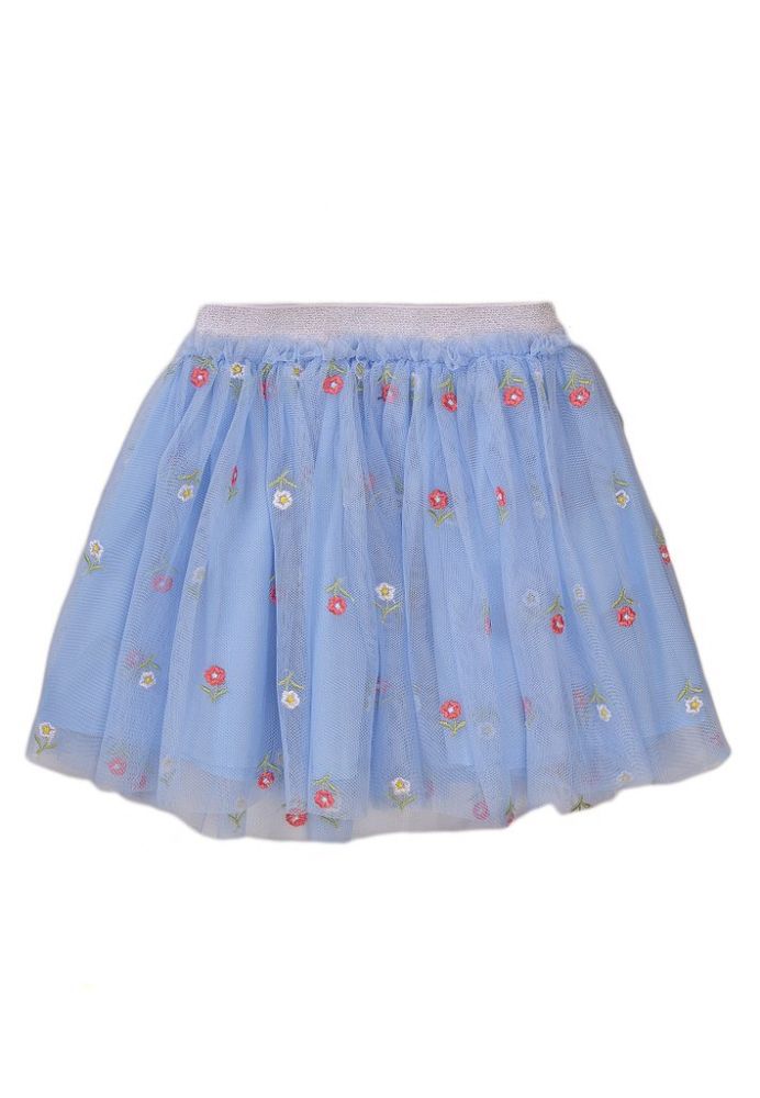 Vrstvená bavlněná síťovaná květinová sukně modrá.