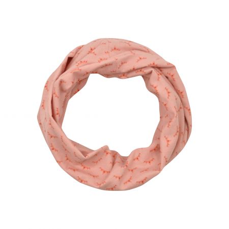 Holčičí nákrčník typu "tunel". Světle růžová barva s jemným tiskem se dá skvěle kombinovat se světlými i výraznějšími odstíny růžové nebo tyrkysové.