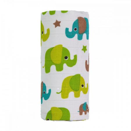 Recenze T-tomi BIO Velká bambusová osuška - zavinovačka 120 x 120 cm Zelení sloni